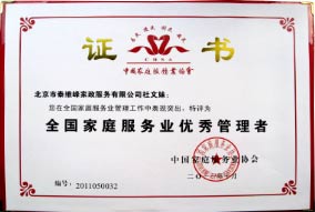 泰維峰公司總經(jīng)理,榮獲“全國(guó)家庭服務(wù)業(yè)優(yōu)秀管理者”稱(chēng)號(hào)